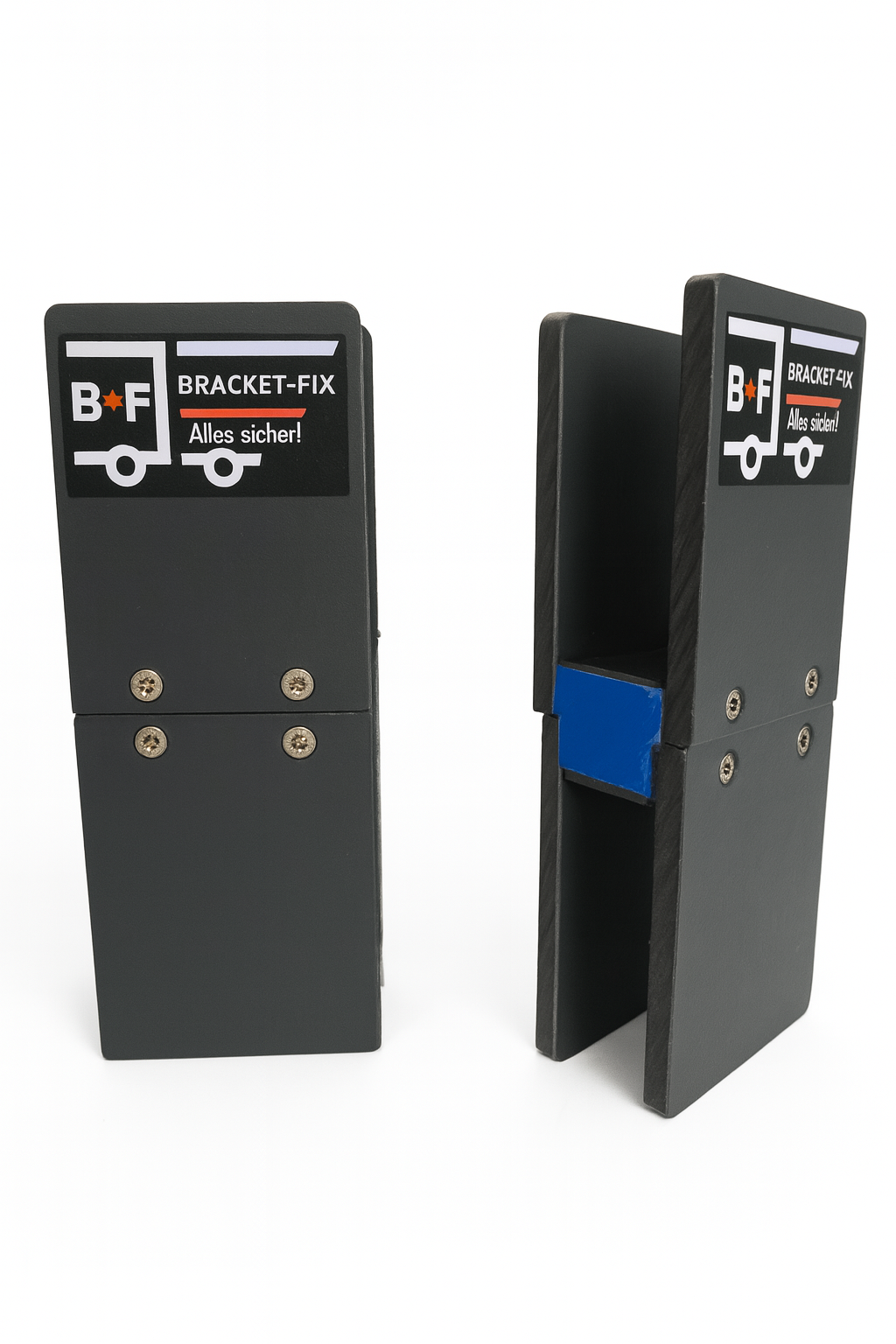 Bracket-Fix Modell 2.1 ist eine praktikable Halterung zum Aufstecken, die es LKW-Fahrern ermöglicht, den Zwischenwandverschluss oder auch Spannbrett genannt, in LKWs mühelos und schnell zu sichern. So ist immer alles an seinem gewohnten Platz. Dieses Modell ist für nahezu alle gängigen Zwischenwandverschlüsse, die bis 400 daN ausgelegt sind. (BC bis 400 daN siehe Produktbilder) Dieses Modell hat einen Abstandshalter, sodass man nun auch Unter den Zwischenwandverschluss greifen kann um Ihn Rauszuheben. Das Sorgt für schnelleres Handling und mehr Effizienz beim Sichern der Landung.